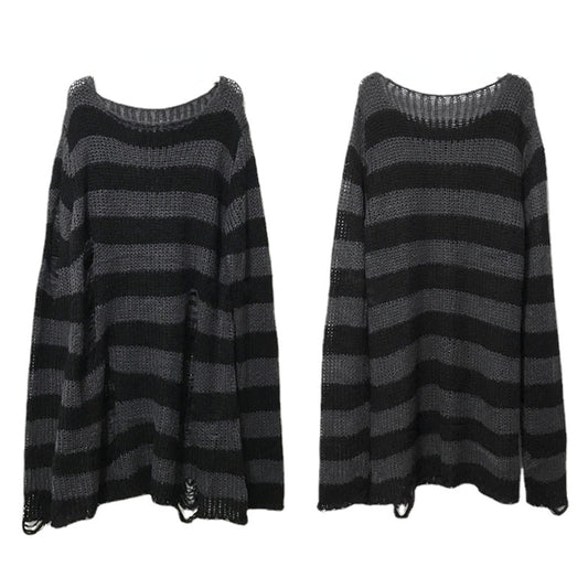 Grunge Punk Gothic Long Striped Sweater Dark Gray