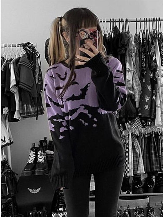 Punk Dark Grunge Egirl Long Striped Sweater Purple Gradient