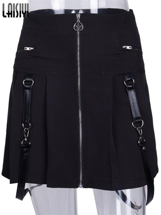 Dark Grunge Pleated Mini Skirt 2 Straps