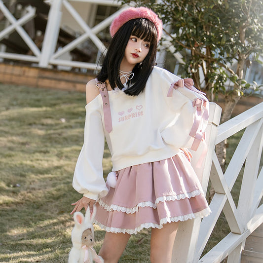 Kawaii Aesthetic White Pink Striped Sweatshirt