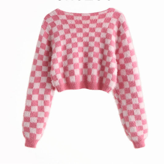 Pink Checker Knitted Cardigan