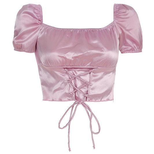 Coquette Satin Lace Up Crop Top