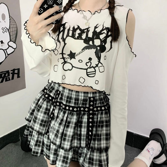 Sanriocore Goth Hello Kitty Long Sleeve Tee