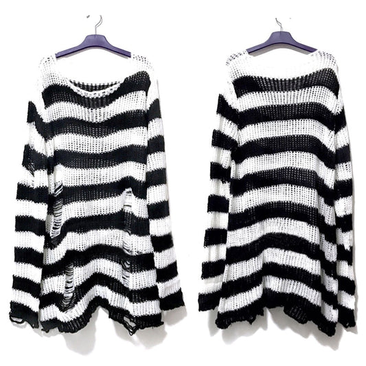 Dark Grunge Goth Long Striped Sweater Grey Gradient