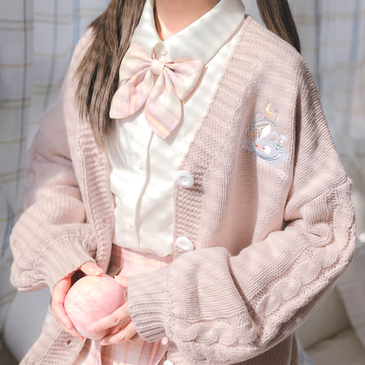Kawaii Aesthetic Warm Cardigan Sweater Pink