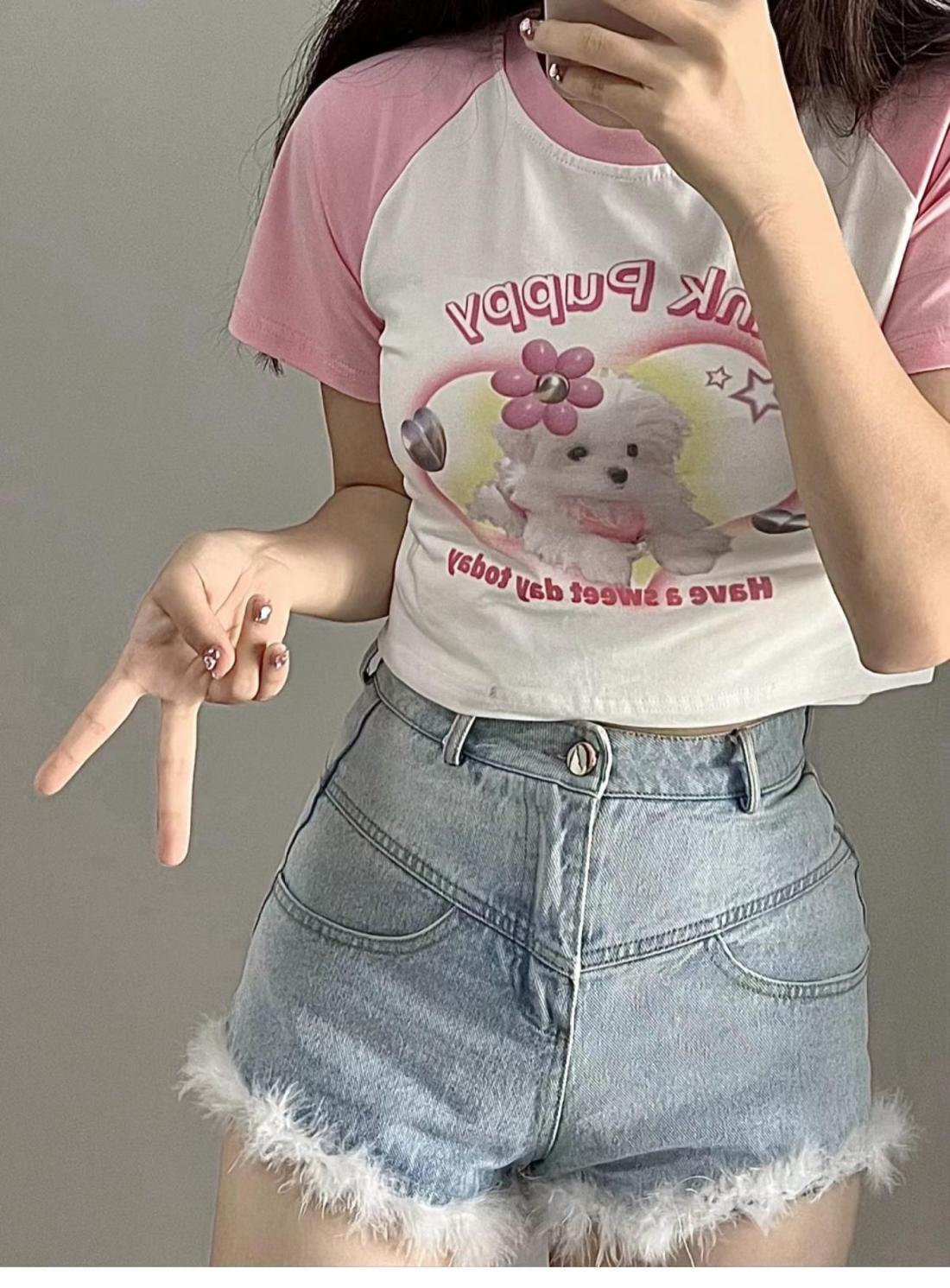 Who can resist this adorable puppy face? Super comfy and easy to wear, this baseball sleeve t-shirt is only waiting for you to adopt it!