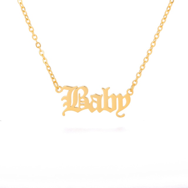 Letter Necklace Gold Gothic - Angel, Princess, Babygirl, Baby