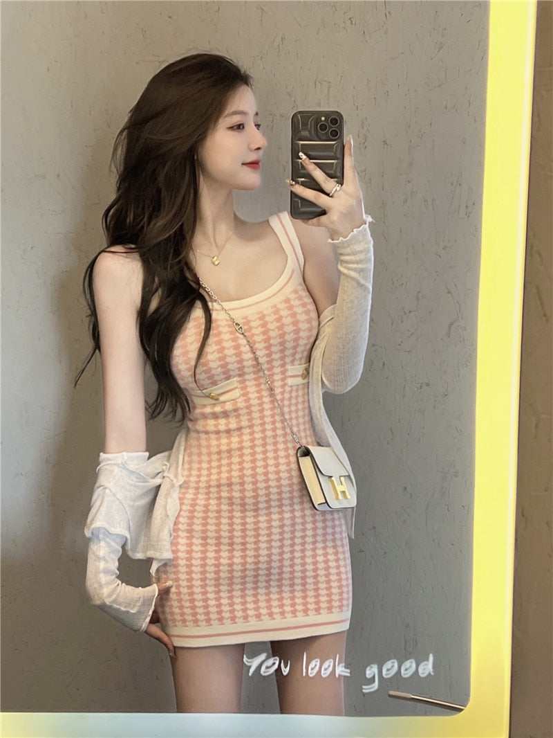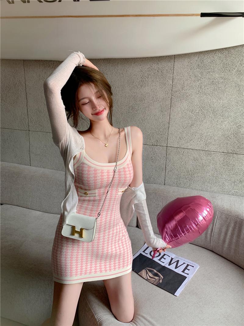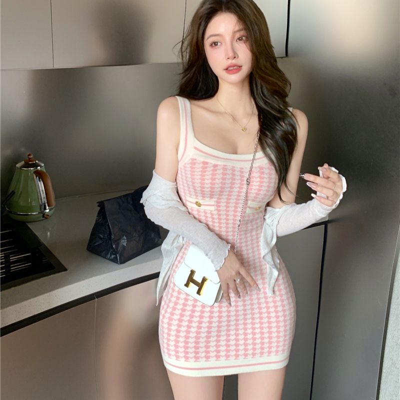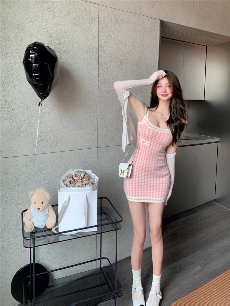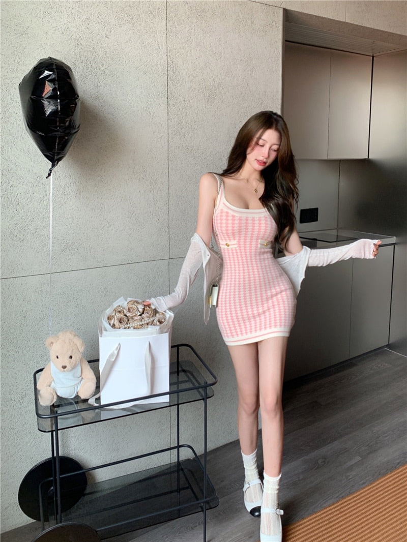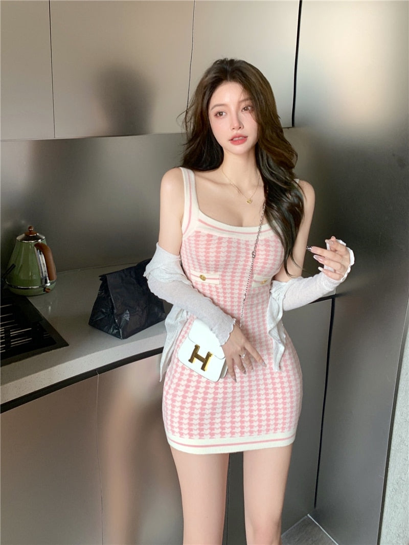 Soft Girl Pink Houndstooth Mini Knitted Dress