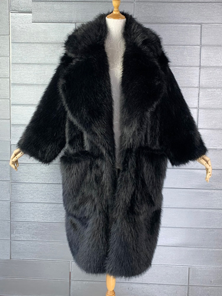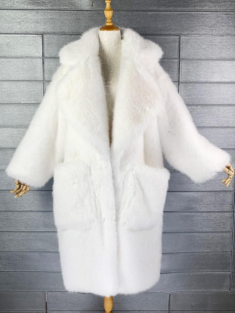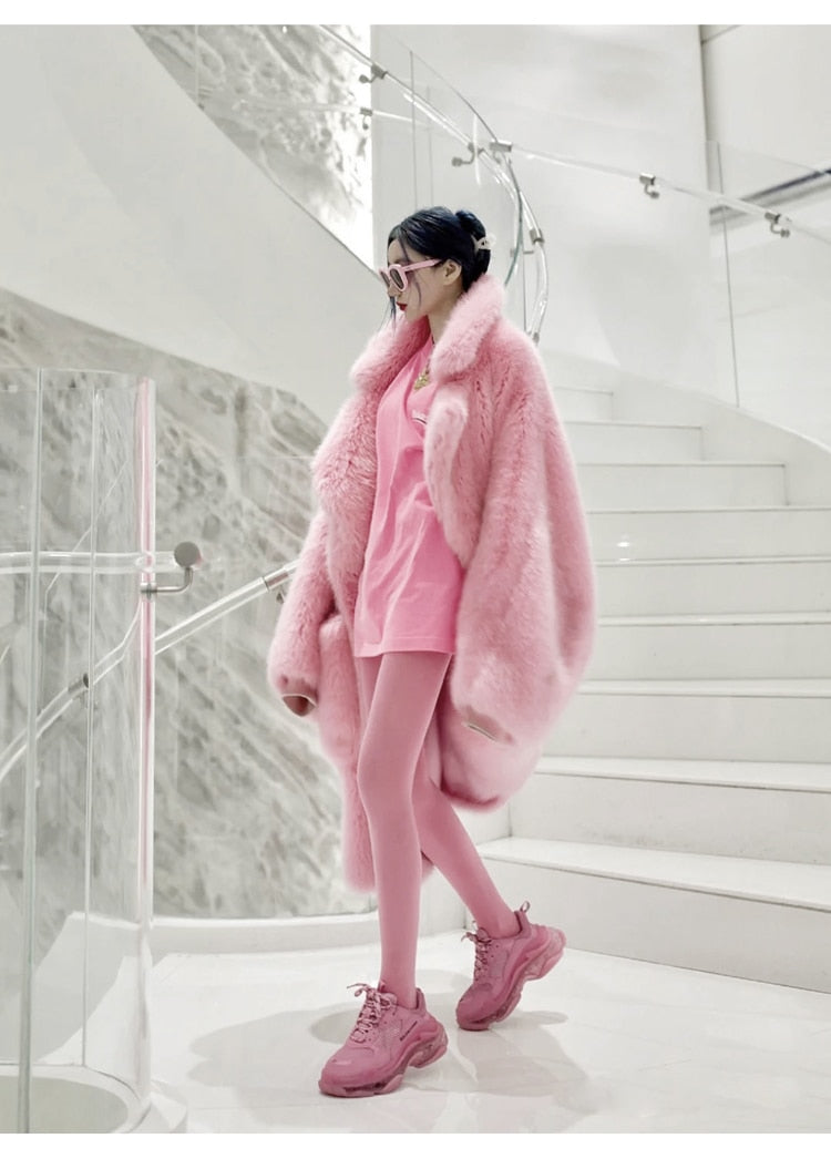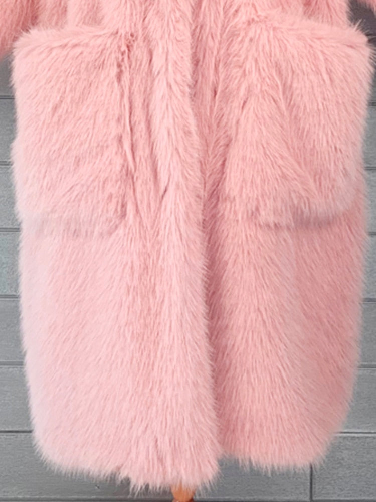 Y2K Long Oversized Pink Fluffy Faux Fur Coat